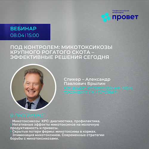 Вебинар «ПОД КОНТРОЛЕМ: МИКОТОКСИКОЗЫ КРУПНОГО РОГАТОГО СКОТА – ЭФФЕКТИВНЫЕ РЕШЕНИЯ СЕГОДНЯ»